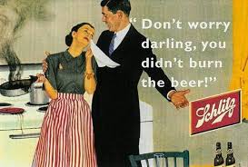 This old advertisement for beer is one that I found that I have mixed feelings about. While it is somewhat humorous and portrays the whole 1950's "everything is pleasant" thing, it also shows the woman to be the inferior servant for her husband, who makes fun of her in the ad. So, even though it is kinda funny, it also angers me a bit.